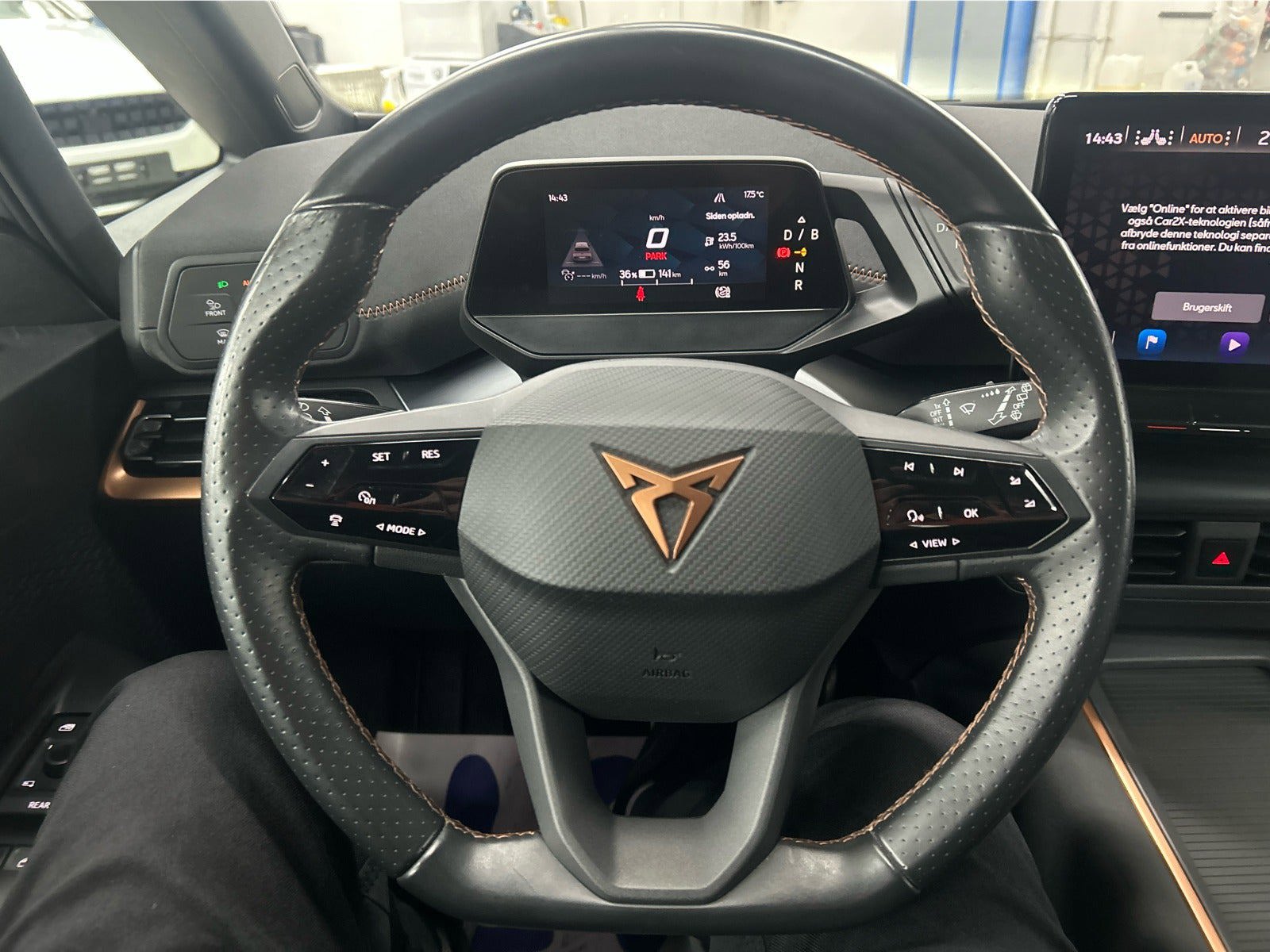 💺 Dinamica bucket-sæder i Granite Grey 🖥️ Stor infotainmentskærm med navigation og online-tjenester 📱 Trådløs Apple CarPlay / Android Auto + trådløs opladning 🔊 Komforttelefoni med LTE 🌡️ Climatronic klima 🎨 Ambientebelysning (interiør & eksteriør) 🚘 Adaptiv fartpilot m. ”follow-to-stop” 🔦 LED-forlygter + fjernlysassistent 🟪 Mørktonede ruder bag 🛞 19” CUPRA Typhoon alufælge i Glossy Black 🔁 Electric folding & heated side mirrors 📸 Bakkamera 🅿️ Parkeringssensorer for & bag 🧊 Elektrisk kabinevarmer 🛡️ PreCrash & omfattende sikkerhedssystemer